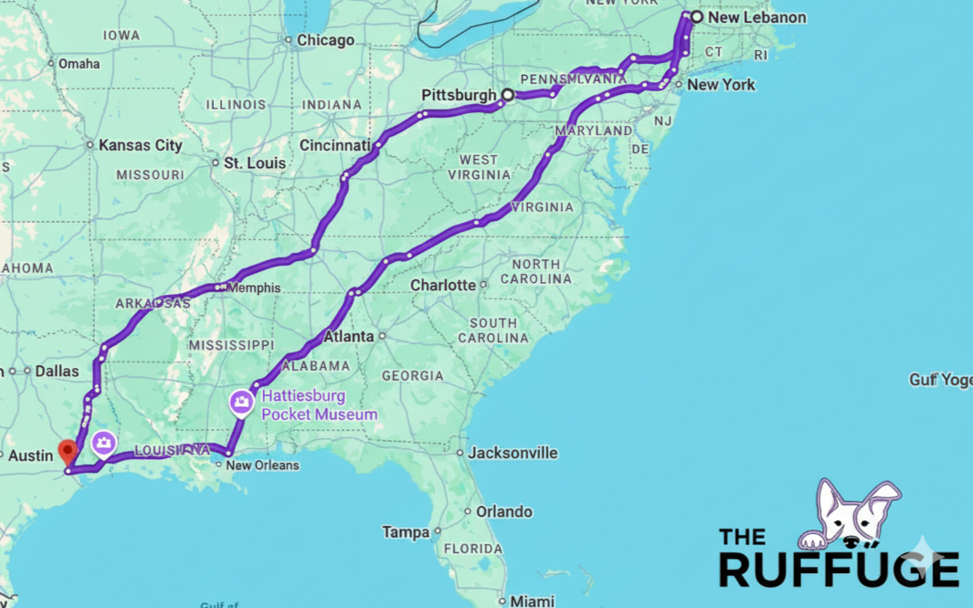 Upcoming Road trips 10/23 - Northeast 11/7 - Northeast 11/21 - Northeast 12/11 - Northeast Cost $250 for Small - XL Kennels$350 for XXL Kennel Book a Trip Northeast Route $25.00 Let's Ride! Added! Midwest Route $250.00 Let's Ride! Added! Pacific Northwest Route $250.00 Let's Ride! Added!